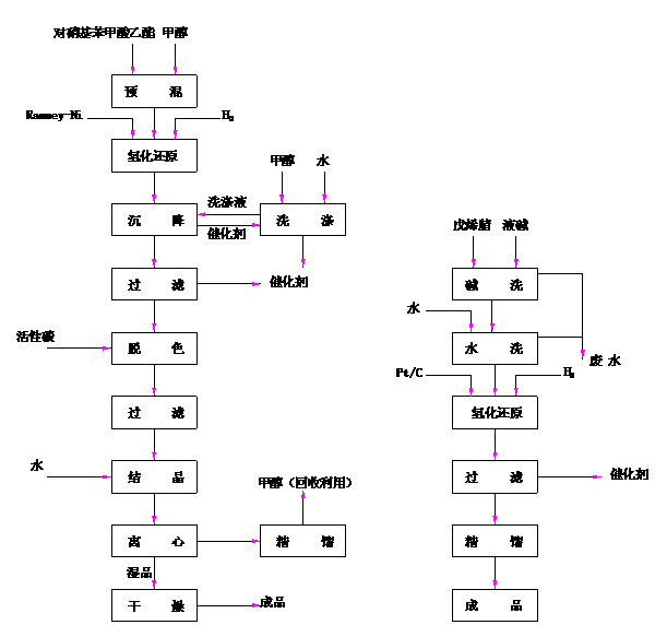 1、對氨基苯甲酸乙酯工藝流程介紹