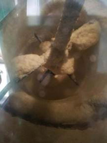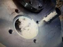2、結(jié)晶釜生產(chǎn)過程中容易產(chǎn)生物料抱軸,掛壁現(xiàn)象,釜壁上或槳葉上有厚厚的結(jié)晶物,物料成整塊無法出料等諸多問題;